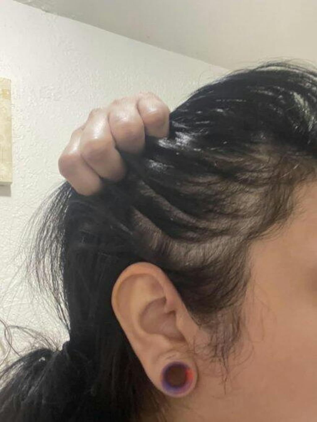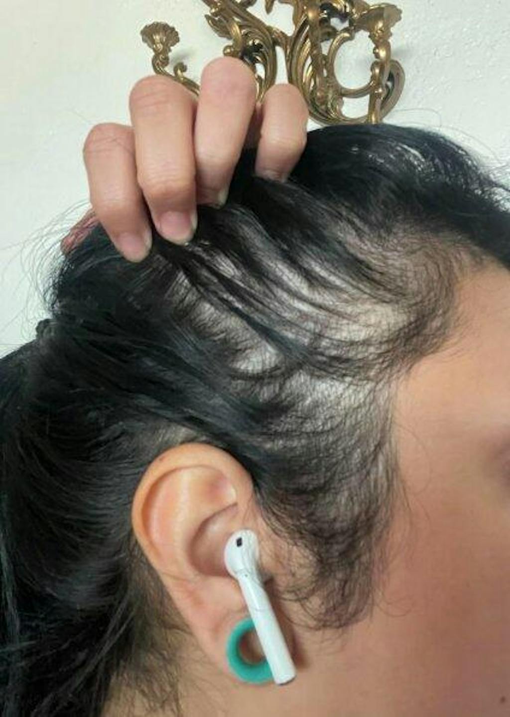 Visible baby hair growth around the temples and hairline by week 2